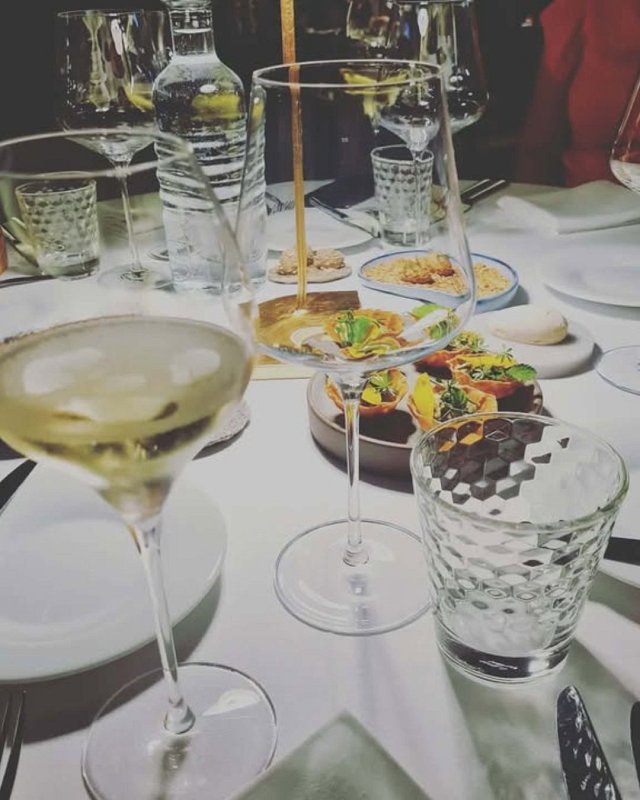 “A boste vinsko spremljavo gospa? Da, seveda. Bil bi greh, če bi rekla ne.” Pričeli smo s paštetkami, maslom, nadaljevali s postrvjim tartarom, potem krškopoljcem. Lični krožniki in dobro okusi. Potem smo dobili še sladko darilce za domov.